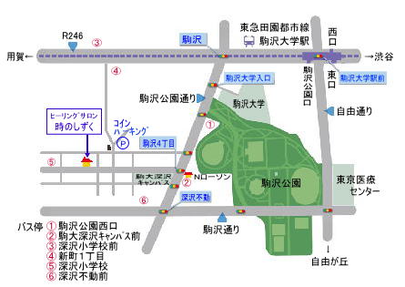 - ・駒大深沢キャンパス前(地図②)下車 徒歩3分